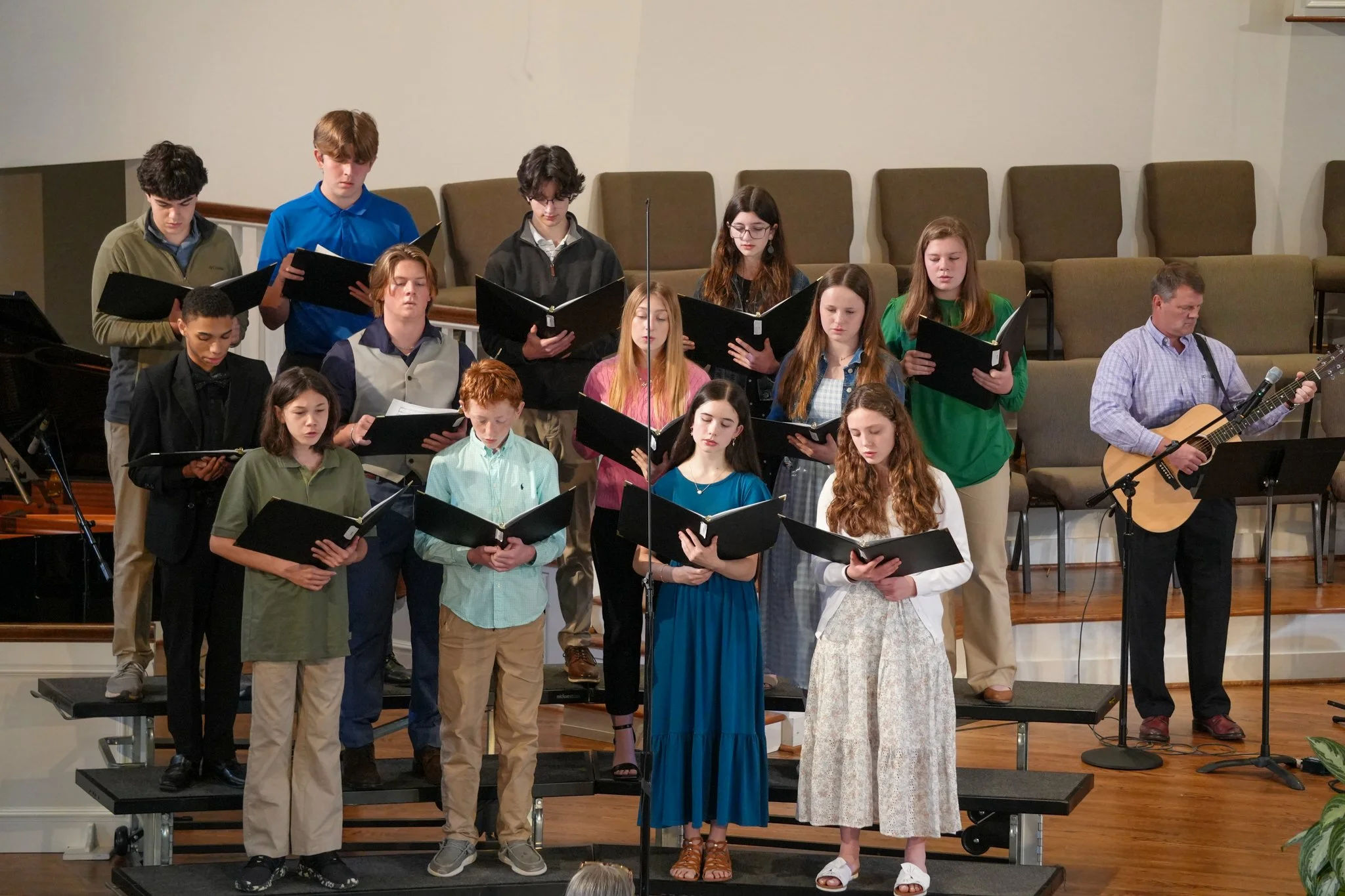 On Sundays from 5:00-6:00 p.m., the youth praise team practices leading music for youth group on Wednesday nights and for occasional Sunday services.